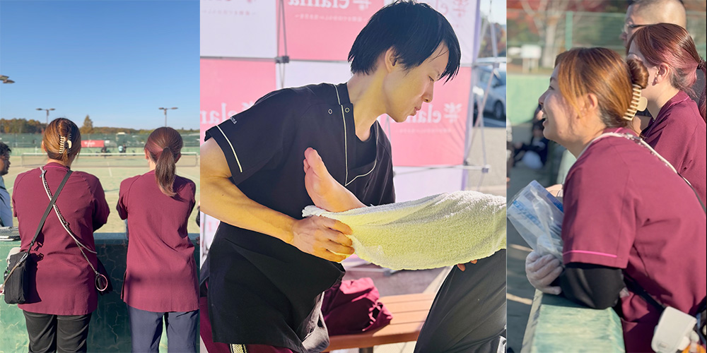 当日は、看護師2名・整体師1名のelamaスタッフがサポートとして参加し、